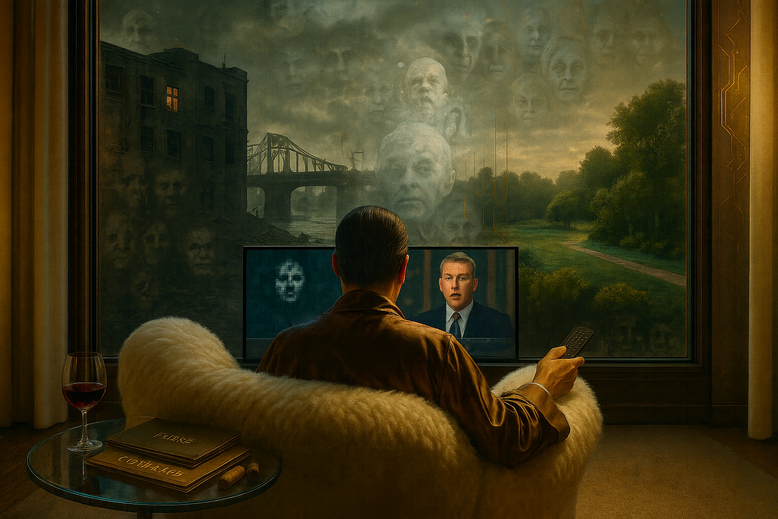 From the comfort of that fluffy chair, They find the smooth angle, frame the shot, Wrap their lies like gold-plated thought. They twist the truth-a Heimlich spin- Until the breath of reason caves within. Beneath the silk and camera blink, Their human frailties still stink.